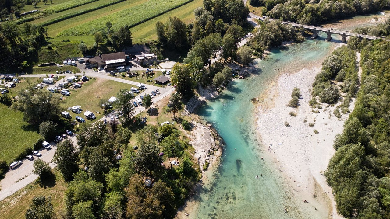 Kamp Labrca stoji na čudoviti lokaciji, le korak od reke Soče.