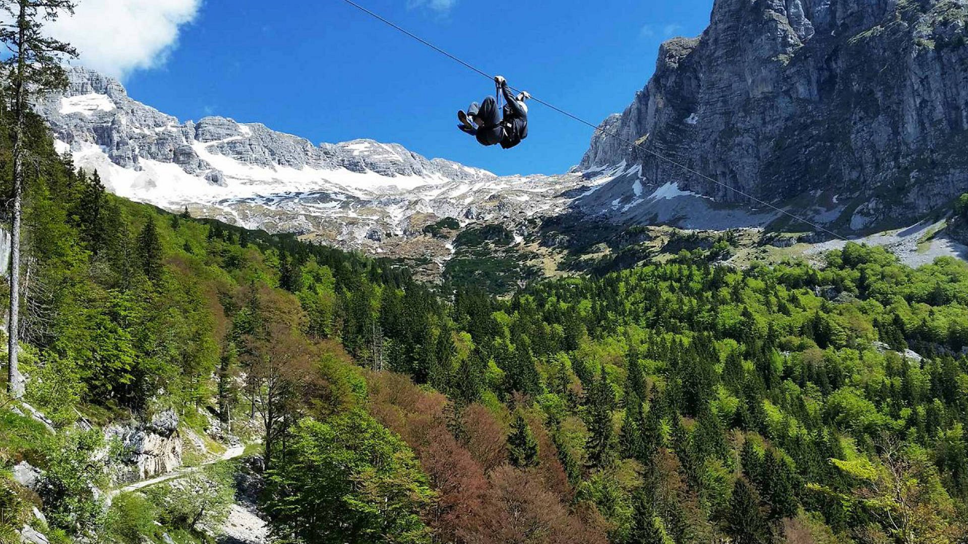 We start with 20-minute exciting drive in our 4X4 vehicles that will take you to Krnica valley, our first Zipline point. Once there, the tourist guide will advise you on all the rules you need to follow, explain the basics, and hook you up on the steel wire using special safety belt making sure you are safe and ready to fly. The drop down five steel wires is 3km long and approximately 200 m above ground. While dropping, you can reach a velocity of 60km/h. The adventure ends about 300m lower, slightly above Kanin’s gondola lift B station. The adventure takes at least 3 hours, we highly recommend you wear comfortable clothes and sport shoes.