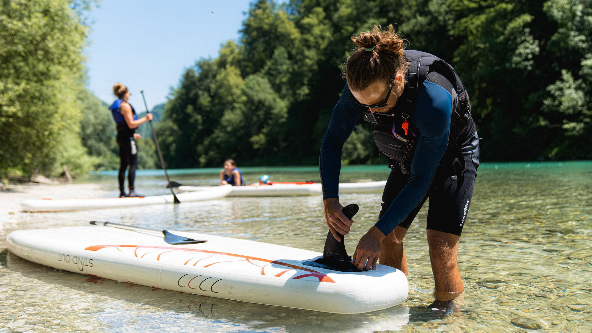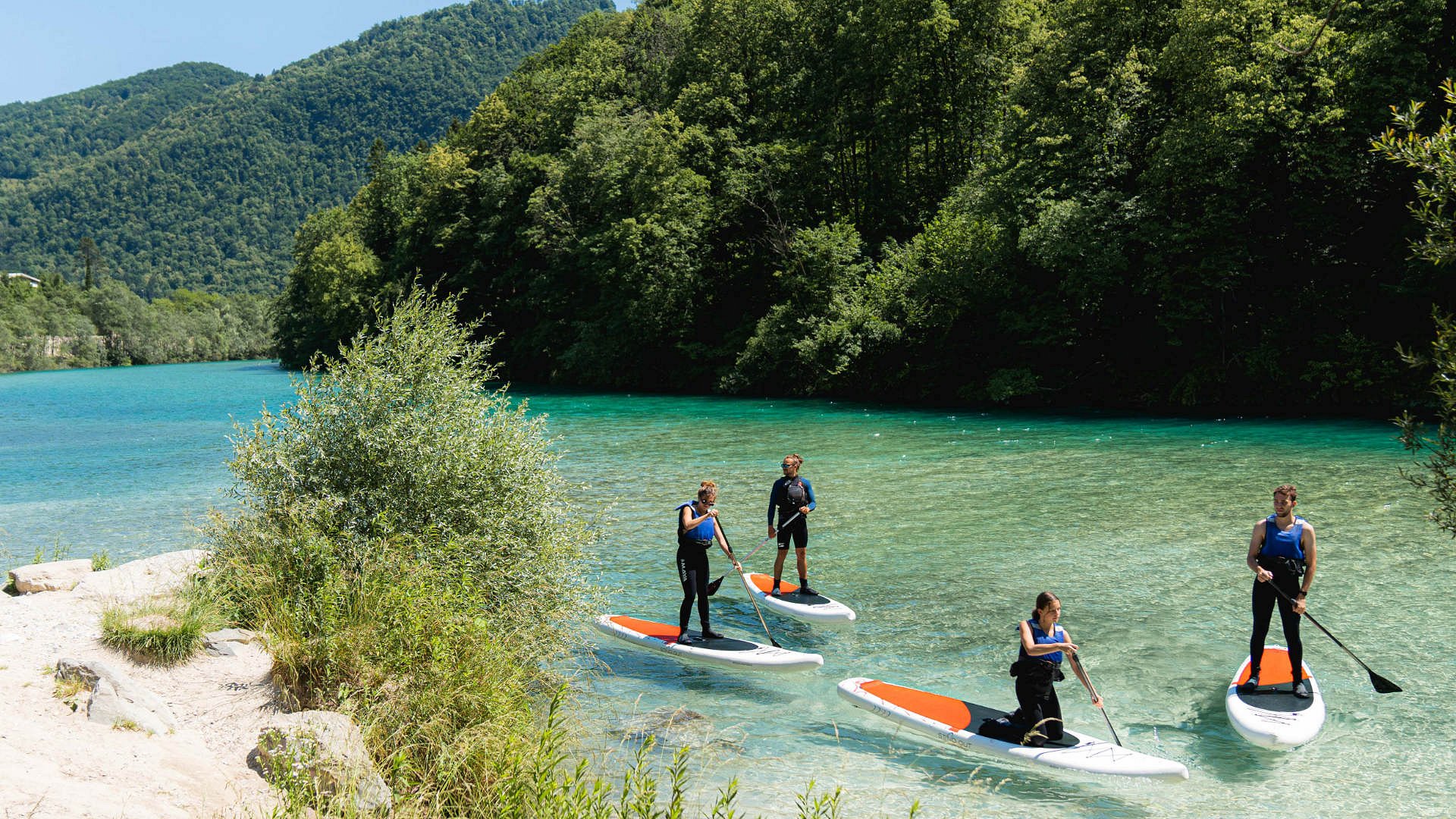 Želite preizkusiti svoje spretnosti in ugotoviti, ali se vam šibijo kolena, če ˝stojite˝ na vodi? Potem izposoja SUP-a ponuja odličen izziv za vas. Pri nas dobite SUP in vesla, vi prinesete kopalke, dobro voljo in pripravljenost na nov izziv. Svetovali vam bomo tudi o izbiri najprimernejše lokacije za SUP‑anje; lahko se odpravite na Sočo ali pa na mirno jezero v Mostu na Soči. V vsakem primeru boste lahko odveslali do kakšnih skritih kotičkov in samotnih plaž, na katere se boste z veseljem vračali. Nosilnost SUPa je 110kg.