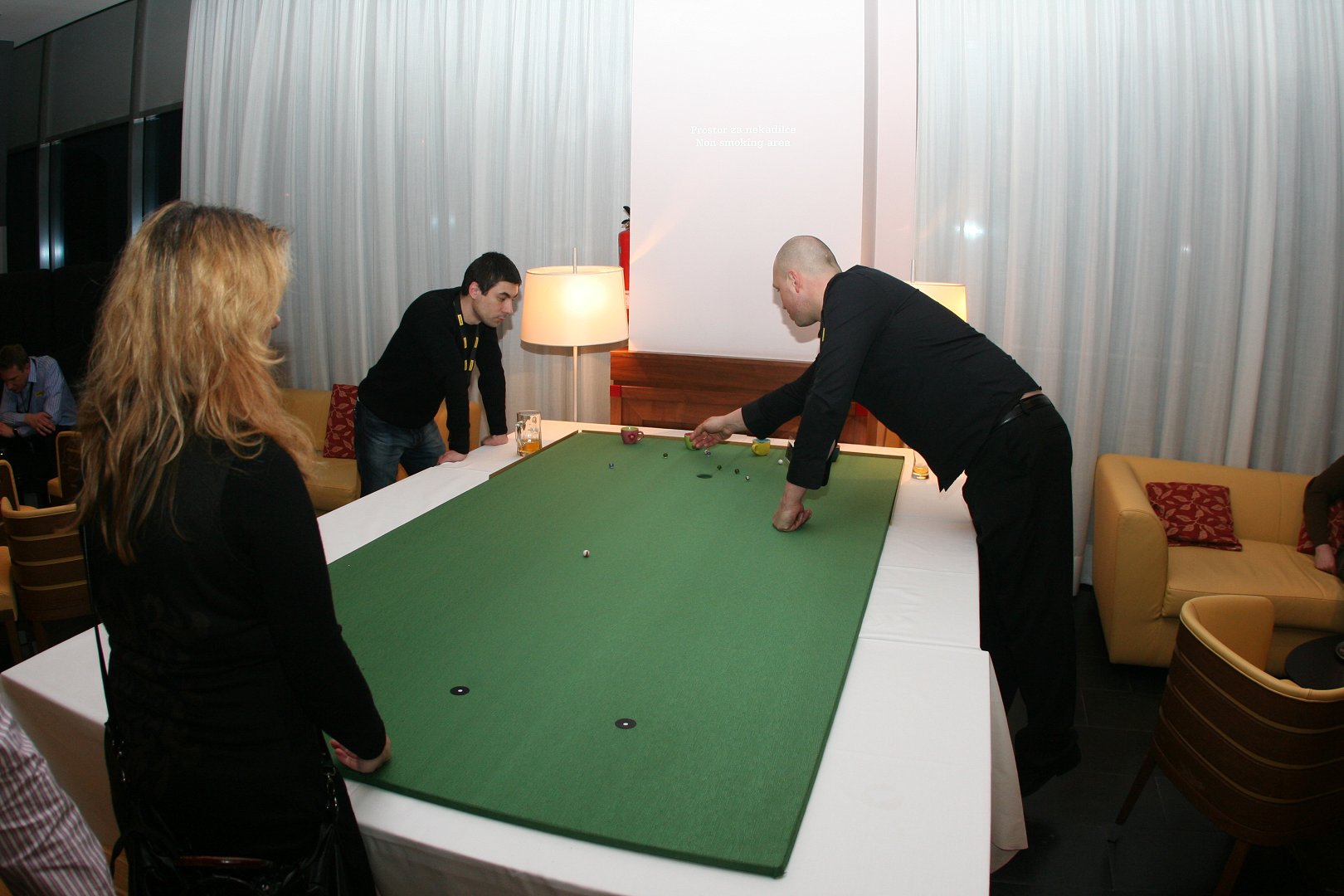Program se odvija na lokaciji, ki si jo sami izberete. Postavimo vam več različnih točk, na katerih se prosto zabavate in tekmujete s poslovnimi partnerji ali sodelavci. Pomerili se boste v igrah, kot so štiri v vrsto, golf putting, jenga, ročni nogomet, »frcanje« frnikol, križci in krožci, pikado itd. Igre in program lahko seveda prilagodimo vašim željam in potrebam ter poskrbimo za nagrade, glasbo in animatorje. Vse, kar vam obljubljamo, je odlična zabava, na kateri vam bo čas preprosto ušel.
